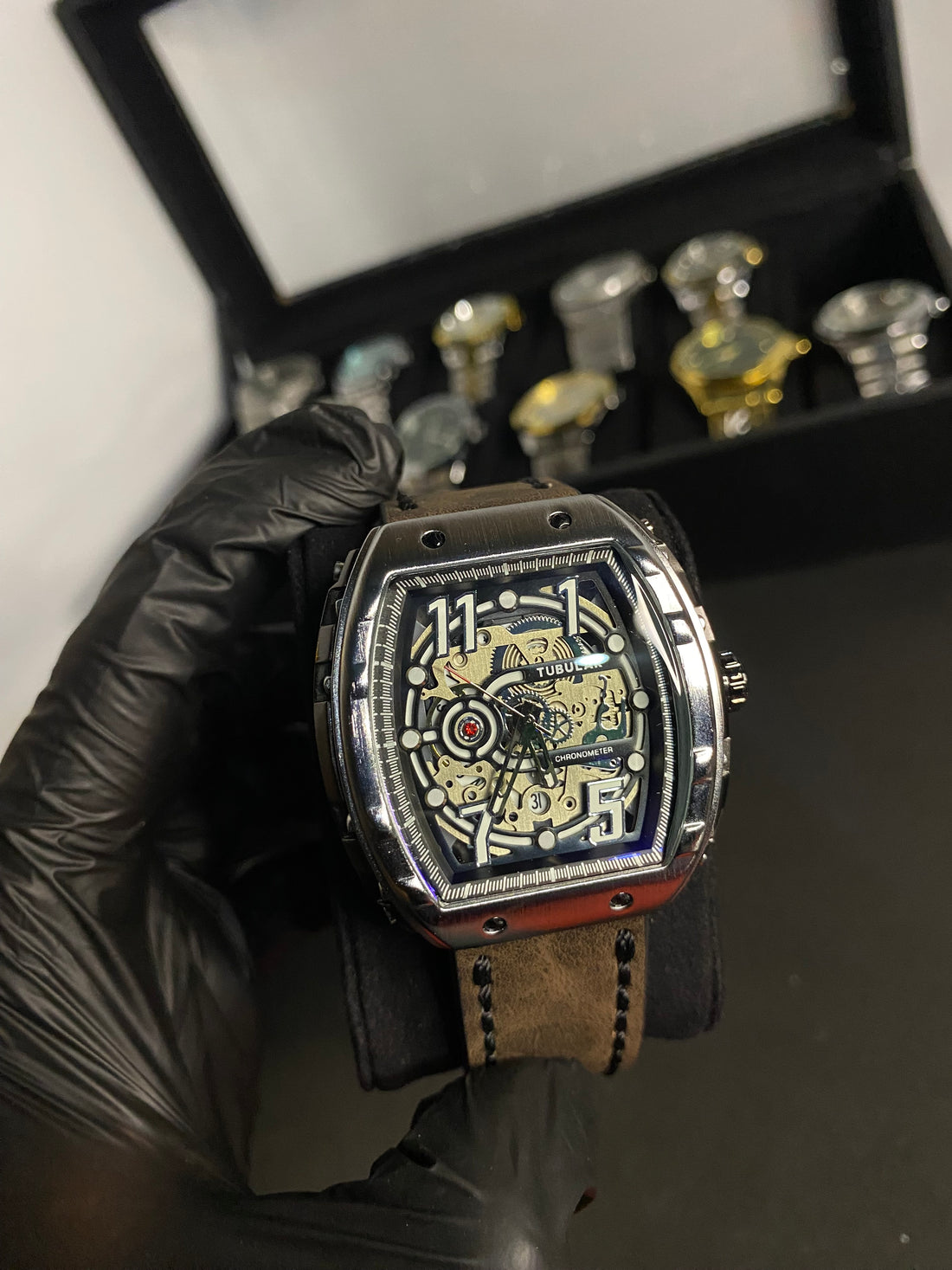 Tabular Leather Strap Sporty Watch with free its box and pakaging