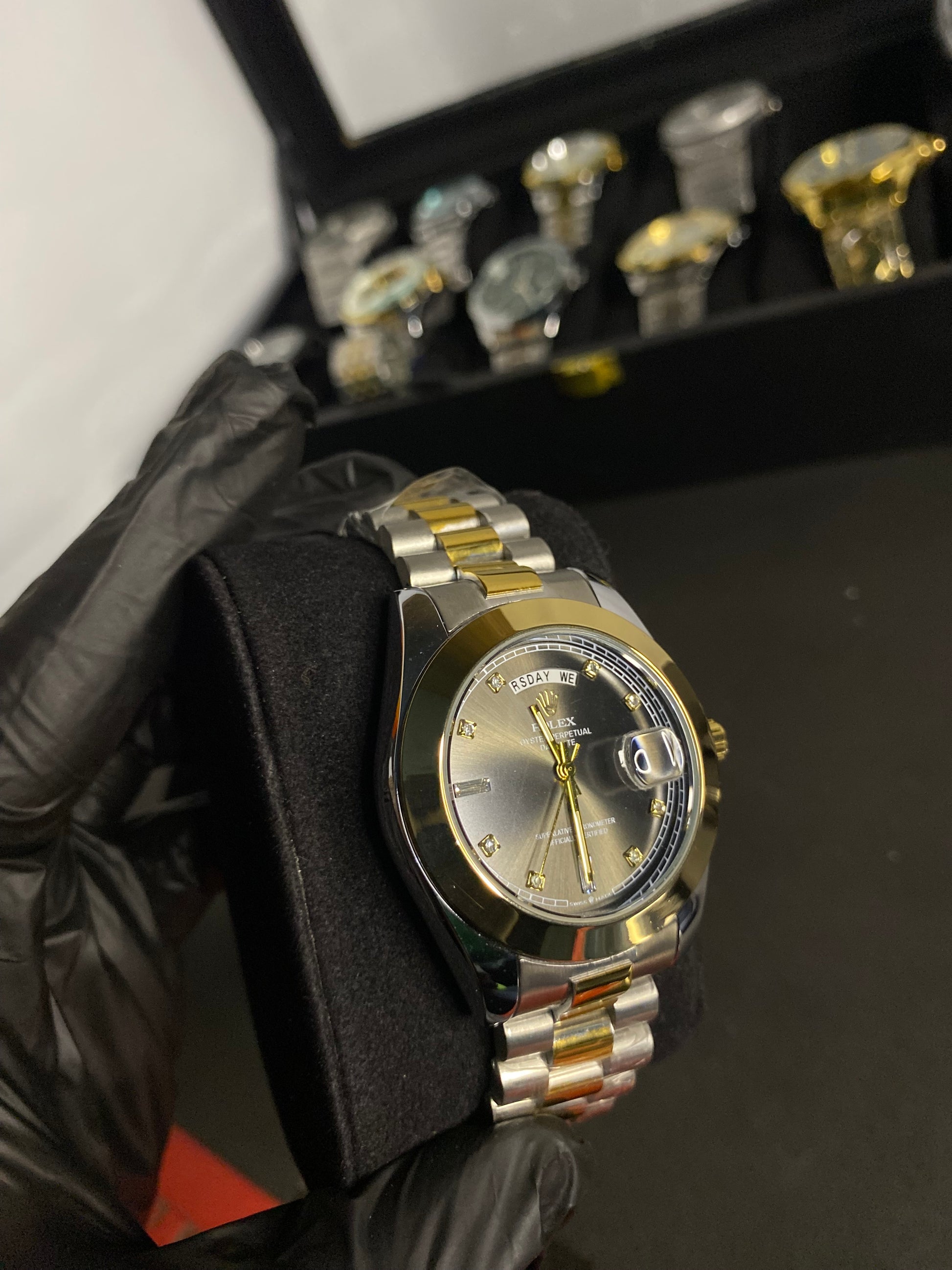 Rollie Day and Date dual Tone watch